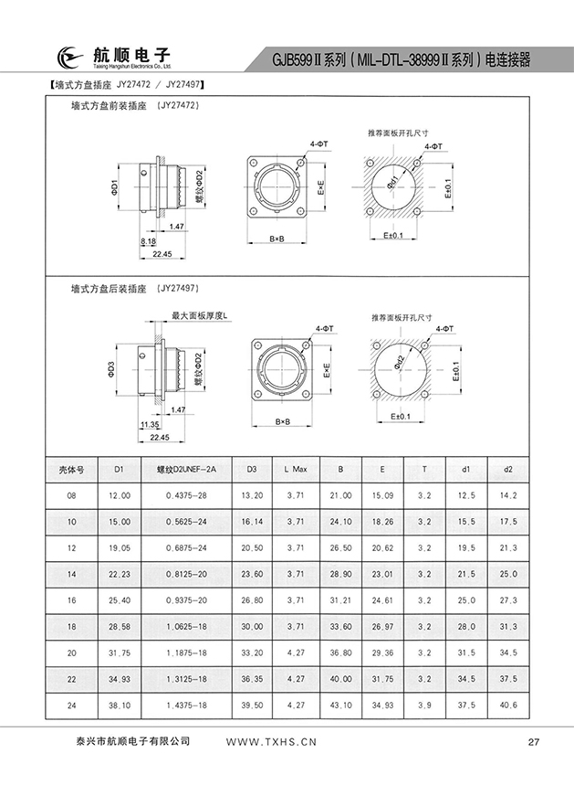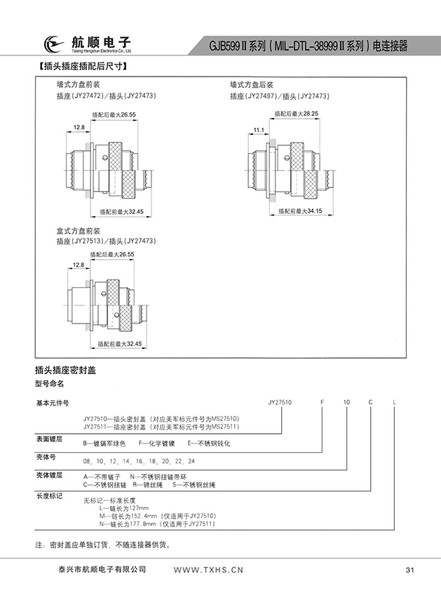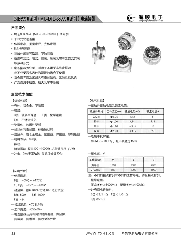 * 符合GJB599A(MIL-DTL-38999K)Ⅱ系列