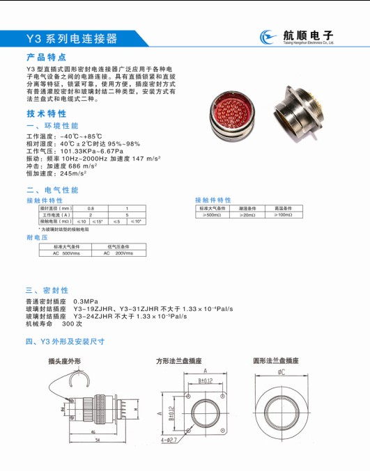 Y3系列圓形航空插頭