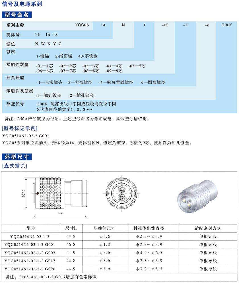 YQC05系列推拉式信號鏈接電連接器