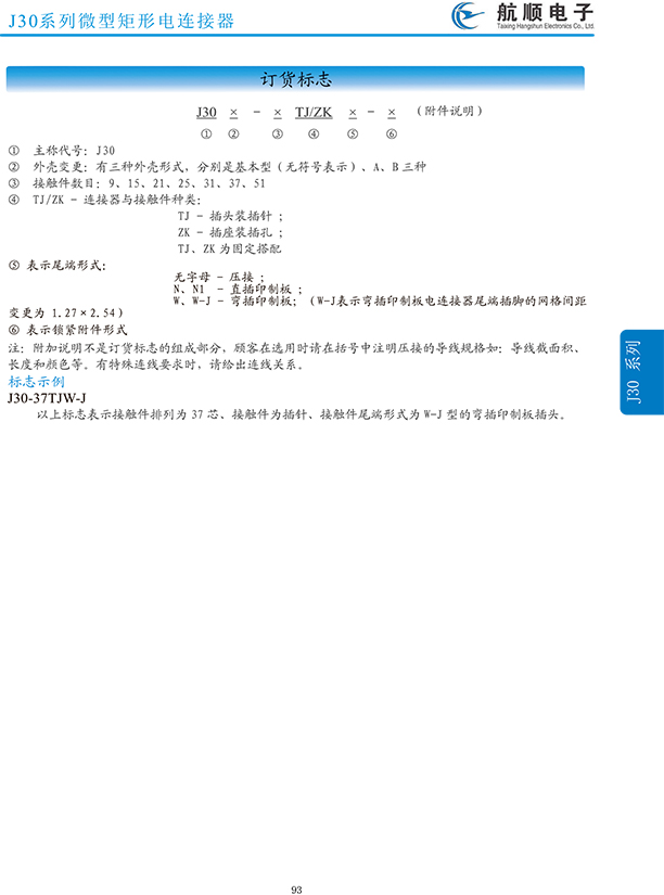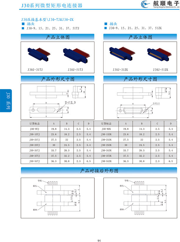 符合GJB2446《外殼定位超小型矩形電連接器總規(guī)范》(相當于美軍標MIL-C-83513,可與美國MDM系列產(chǎn)品和國內同類產(chǎn)品互換,在J30系列產(chǎn)品的基礎上增 加了鋁合金外殼與各種鋁合金尾夾;采用絞線式插針 (俗稱麻花針),單個接觸件接觸點達七個,提高了產(chǎn)品的接觸可靠性;采用1.27mm網(wǎng)格,接觸件密度大、體積小、重量輕;現(xiàn)有9、15、21、25、31、37、51、66、74100芯共十種型譜可供選用;適用導線線芯 截面積為0.070.15mm2,尾端可以根據(jù)用戶要求進行 布線;本產(chǎn)品的鎖緊組件按與產(chǎn)品組裝在一起提供,如不需鎖緊組件請在合同中注明;本系列產(chǎn)品滿足GJB2446《外殼定位超小型矩形電連接器總規(guī)范》的 要求;本系列產(chǎn)品的執(zhí)行標準如下:Q/ZHDZ GC-18J30J系列微矩形電連接器詳細規(guī)范》。
