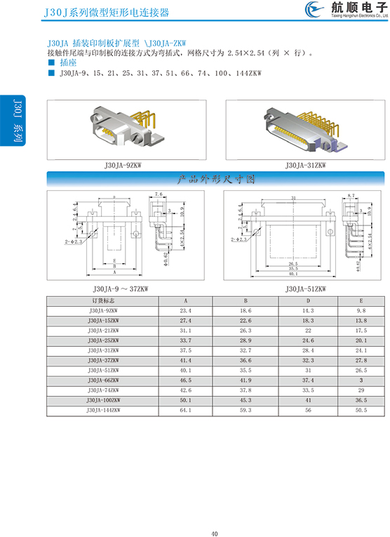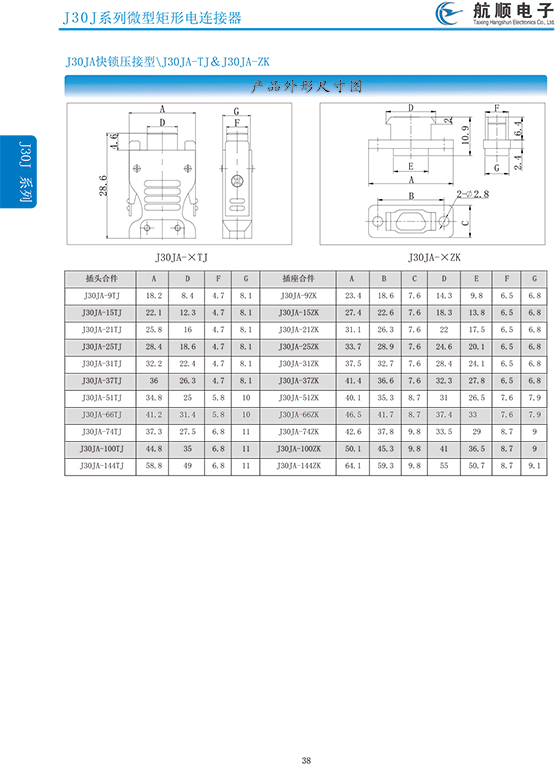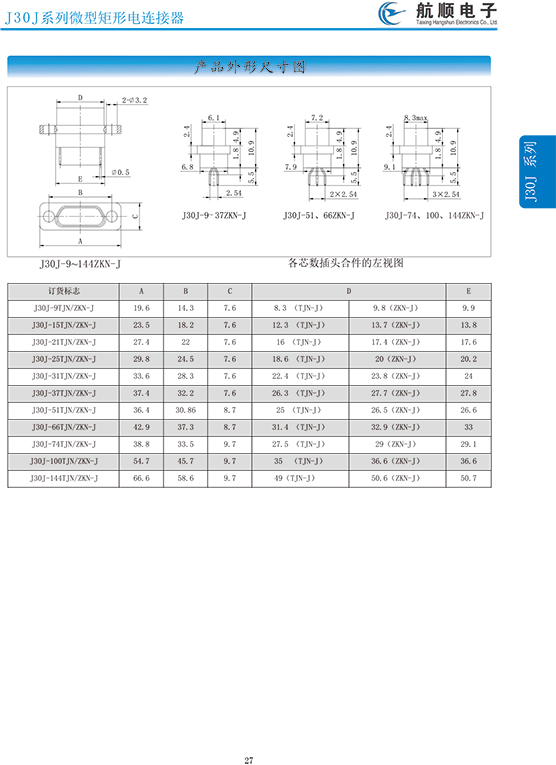 符合GJB2446《外殼定位超小型矩形電連接器總規(guī)范》(相當(dāng)于美軍標(biāo)MIL-C-83513),可與美國MDM系列產(chǎn)品和國內(nèi)同類產(chǎn)品互換,在J30系列產(chǎn)品的基礎(chǔ)上增 加了鋁合金外殼與各種鋁合金尾夾;采用絞線式插針 (俗稱麻花針),單個接觸件接觸點(diǎn)達(dá)七個,提高了產(chǎn)品的接觸可靠性;采用1.27mm網(wǎng)格,接觸件密度大、體積小、重量輕;現(xiàn)有9、15、21、25、31、37、51、66、74、100芯共十種型譜可供選用;適用導(dǎo)線線芯 截面積為0.07~0.15mm2,尾端可以根據(jù)用戶要求進(jìn)行 布線;本產(chǎn)品的鎖緊組件按與產(chǎn)品組裝在一起提供,如不需鎖緊組件請在合同中注明;本系列產(chǎn)品滿足GJB2446《外殼定位超小型矩形電連接器總規(guī)范》的 要求;本系列產(chǎn)品的執(zhí)行標(biāo)準(zhǔn)如下:Q/ZHDZ GC-18《J30J系列微矩形電連接器詳細(xì)規(guī)范》。