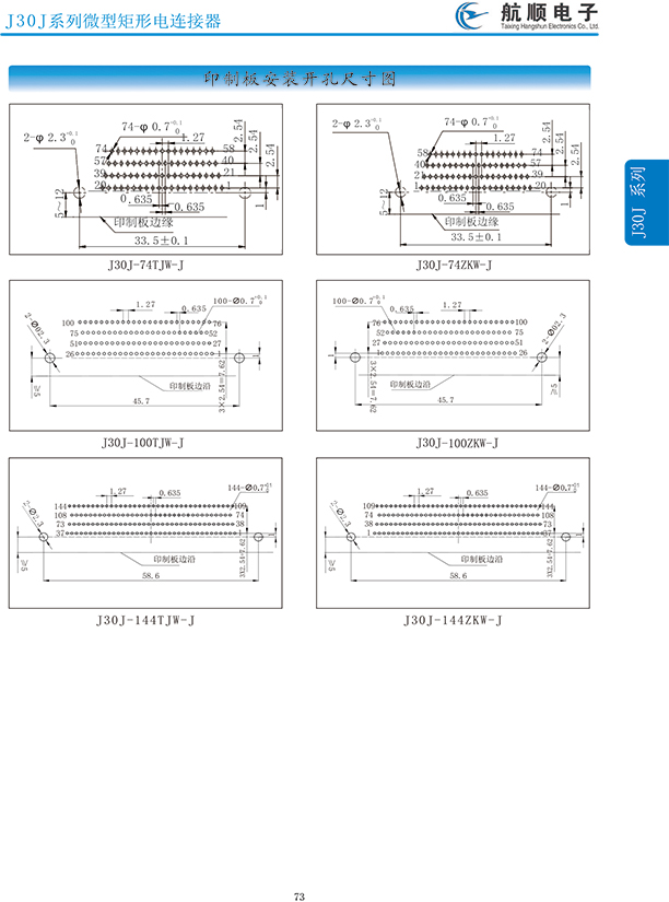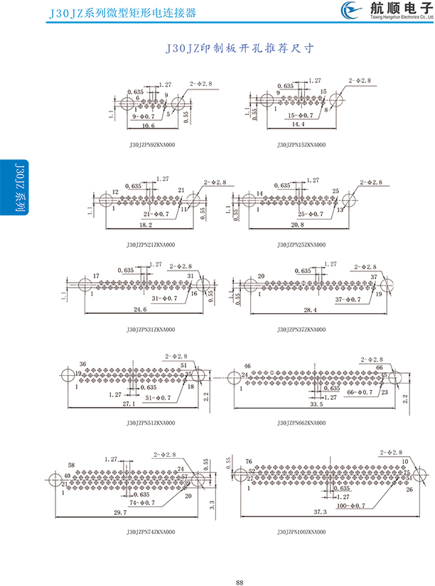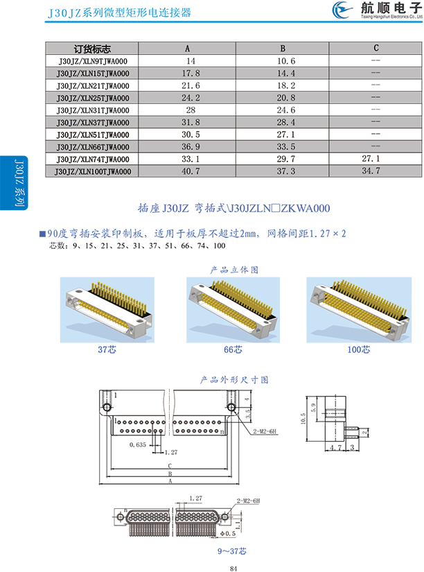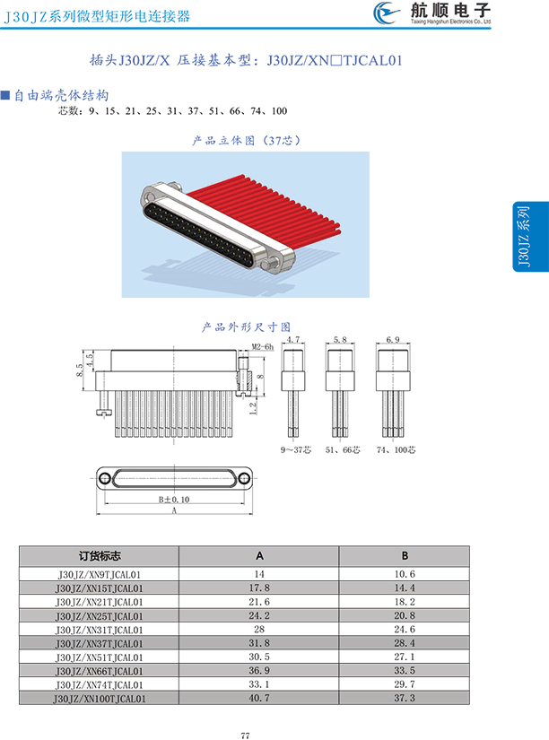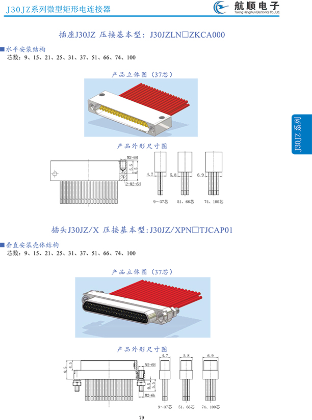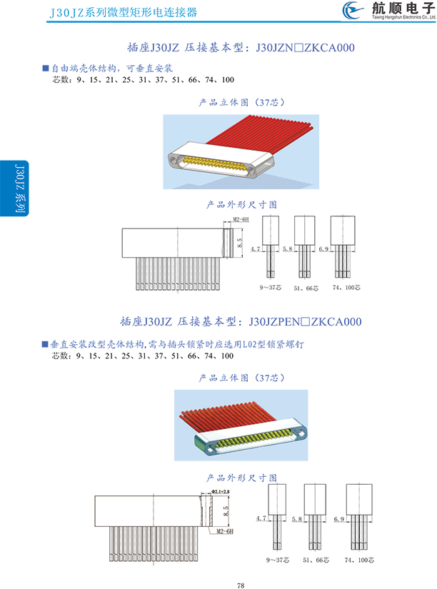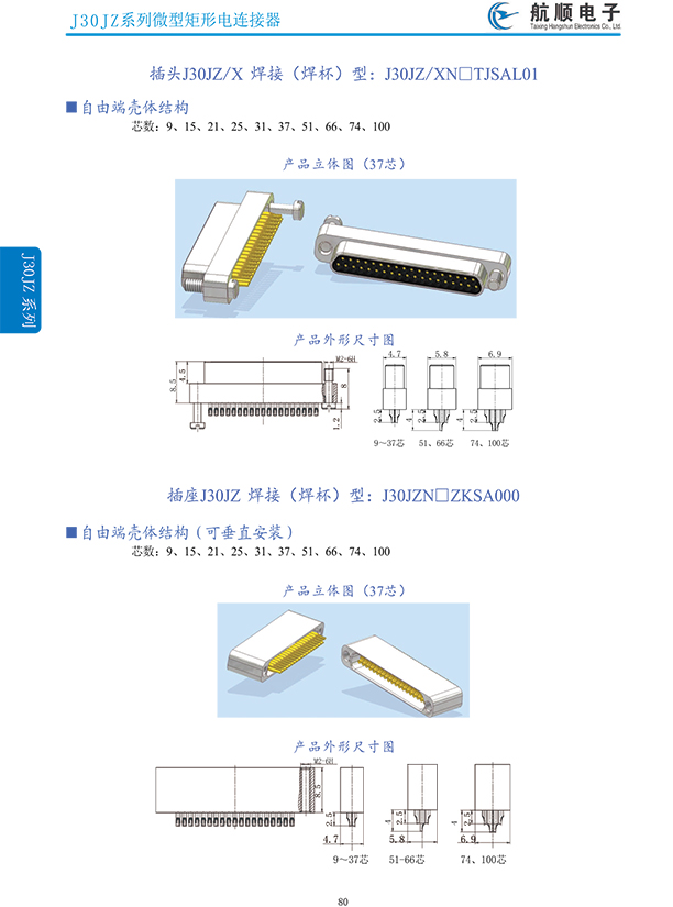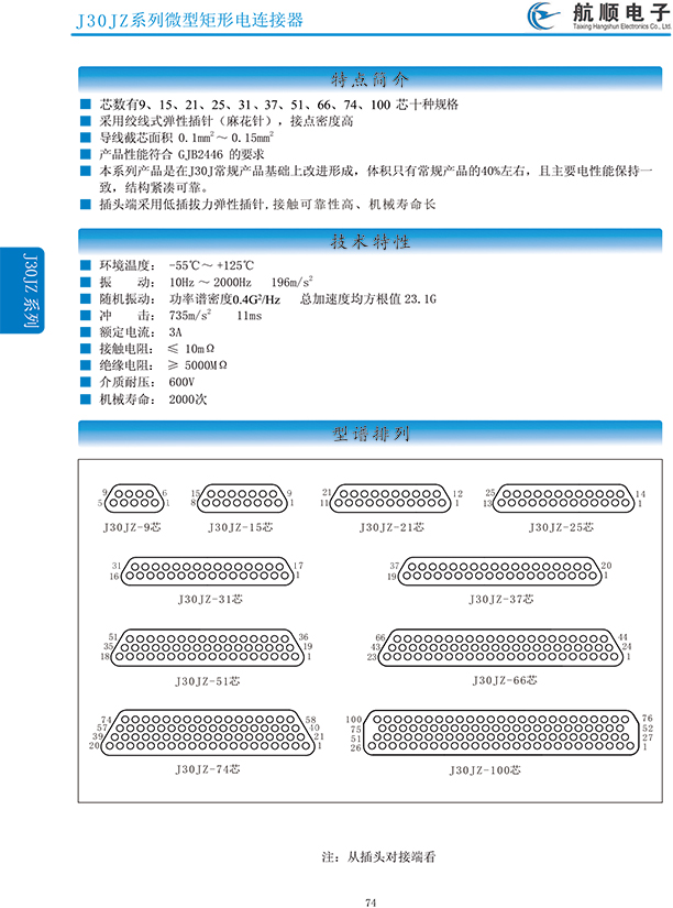 符合GJB2446《外殼定位超小型矩形電連接器總規(guī)范》(相當于美軍標MIL-C-83513,可與美國MDM系列產(chǎn)品和國內(nèi)同類產(chǎn)品互換,在J30系列產(chǎn)品的基礎上增 加了鋁合金外殼與各種鋁合金尾夾;采用絞線式插針 (俗稱麻花針),單個接觸件接觸點達七個,提高了產(chǎn)品的接觸可靠性;采用1.27mm網(wǎng)格,接觸件密度大、體積小、重量輕;現(xiàn)有9、1521、25、31、37、51、66、74、100芯共十種型譜可供選用;適用導線線芯 截面積為0.070.15mm2,尾端可以根據(jù)用戶要求進行 布線;本產(chǎn)品的鎖緊組件按與產(chǎn)品組裝在一起提供,如不需鎖緊組件請在合同中注明;本系列產(chǎn)品滿足GJB2446《外殼定位超小型矩形電連接器總規(guī)范》的 要求;本系列產(chǎn)品的執(zhí)行標準如下:Q/ZHDZ GC-18J30J系列微矩形電連接器詳細規(guī)范》。